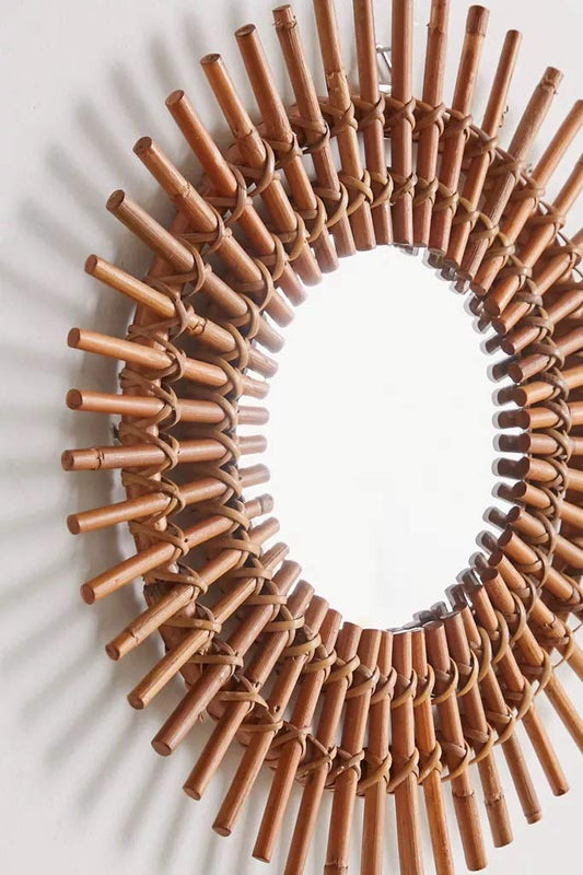 AKWAY Handcrafted Rattan Wall Mirror for Living Room, Bathroom, Bedroom, Home and Office, Wall Decor, Decorative Wall Mirror [Mirror Included]