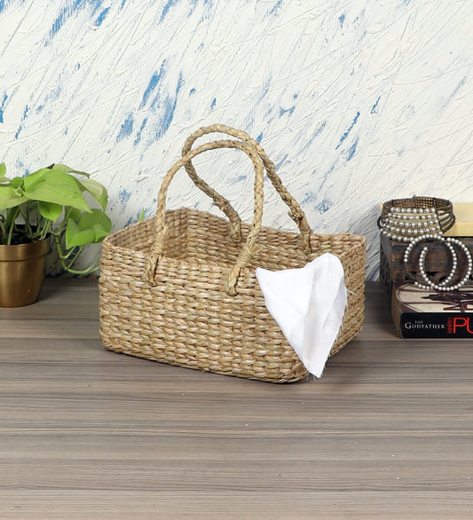 AKWAY Handcrafted Wicker Storage Container Basket with Handles for Toiletry Cosmetic, Towels, Toys, Bathroom, Bedroom, Wardrobe (Beige)