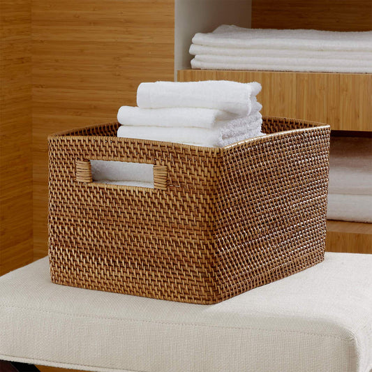 AKWAY Handmade Bamboo Storage Organizer Wicker Basket for Cloth, Bathroom (Rattan,Beige, 14 x 10 x 4)