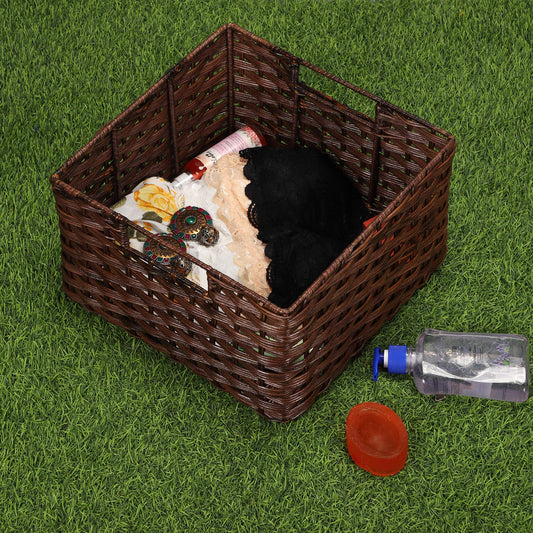 AKWAY Handcrafted Rectangular Bamboo Wicker Basket Organizer (Antique Black, 15 x 10 x 7,Rattan,Pack of 1)