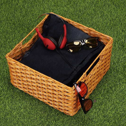 AKWAY Handcrafted Rectangular Bamboo Wicker Basket Organizer (Beige, 15 x 10 x 7,Rattan,Pack of 1)