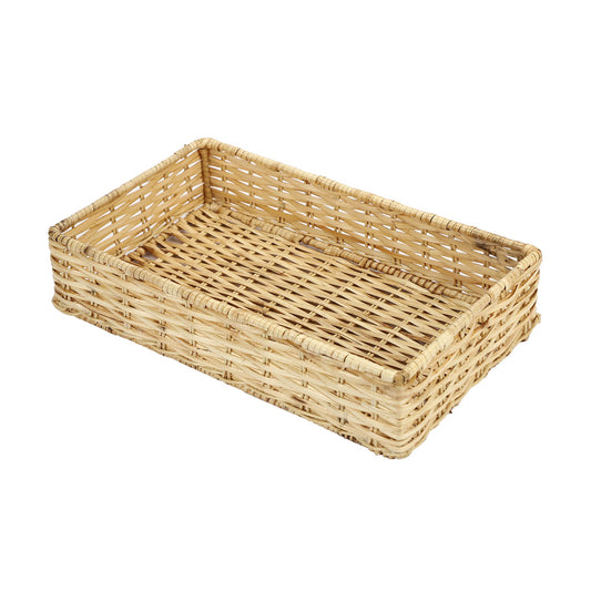 AKWAY Handmade Basket Bathroom Vanity Tray, Kitchen Counter top Storage Shelf Coffee Table Decorative Tray Cosmetic Organizer Display Holder (14 L x 4.5 W x 4.5 H), Rectangular, Rattan & Wicker