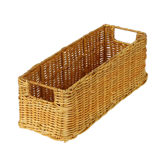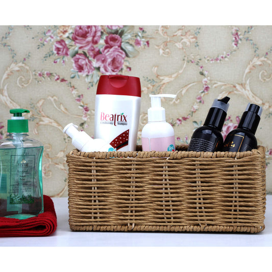 AKWAY Handmade Brass Wicker Basket for Storage Basket, Bin Organizer (Beige, 13 x 6.5 x 3,Rattan,Pack of 1)