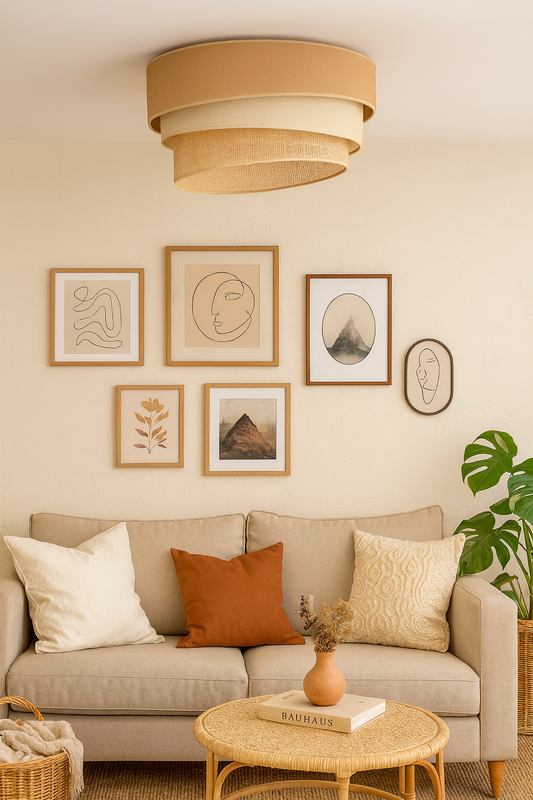 Jute Ceiling Flush Mount Lamp for Living Room | Jute Pendant light | Jute ceiling light - Verona