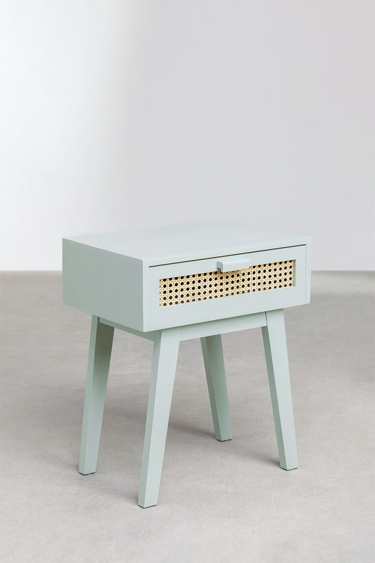 Rattan & Mango Wood Table | Wooden Bedside Table - Mira