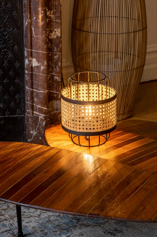 Rattan Table lamp for Living room | Bamboo Bedside table lamp | Cane Table lamp - Kaia