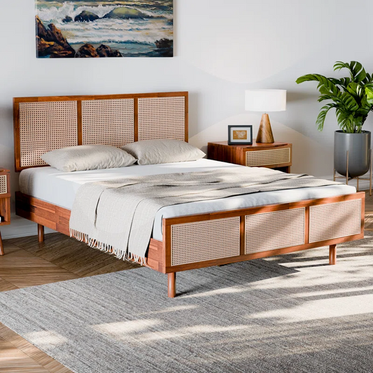 Solid Wood Rattan Bed For Bedroom | Cane Bed For Home -Alani