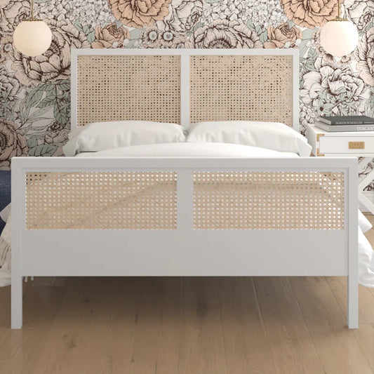 Solid Wood Rattan Bed For Bedroom | Cane Bed For Home -Alexis