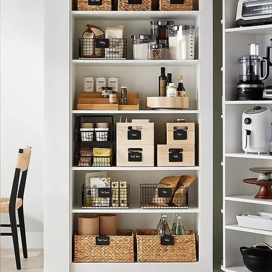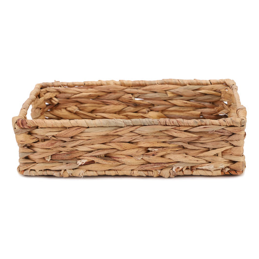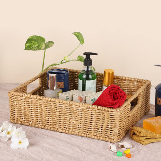 AKWAY wicker seagrass kauna grass water hyacinth rattan cane storage basket - (Beige color) (SET OF 2 - (14" X 10" X 4, 12" X 8" X 4"))