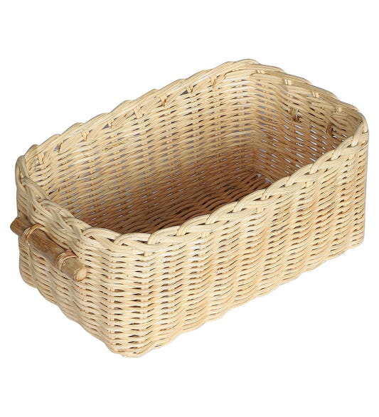 AKWAY wicker seagrass kauna grass water hyacinth rattan cane storage basket - (Beige) (14" L x 10"W x 4" H,Pack of 1)