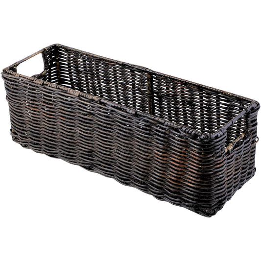 AKWAY Wicker Bathroom Vanity Tray for Toilet Paper and Soap, Kitchen Counter Top Storage Shelf Coffee Table Decorative Tray Cosmetic Organizer Display Holder (14 L x 4.5 W x 4.5 H, Antique Black)