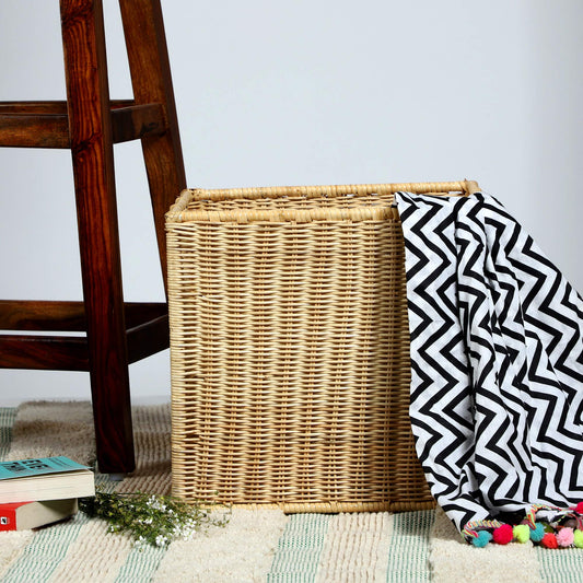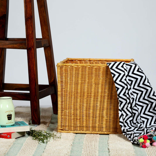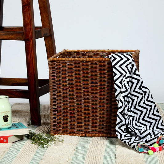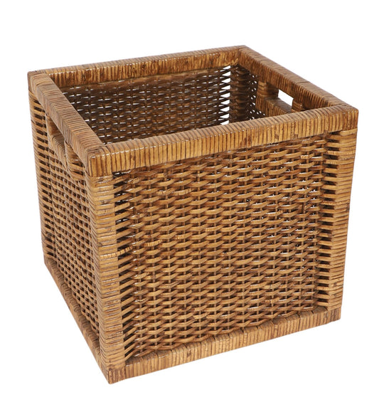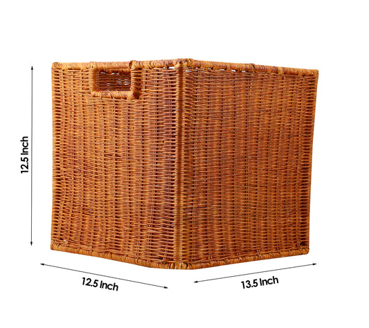 AKWAY Wicker wardrobe basket for storage, cloths, newspapers, photos or other memorabilia (12.5" W x 13.5" L x 12.5" H, Teak Wood (Glossy Finish))