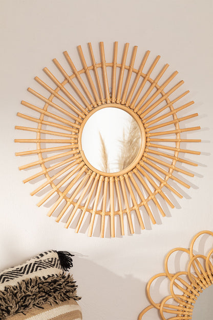 Add a touch of rustic charm to your living room, bathroom, bedroom, home, or office with the AKWAY Handcrafted Rattan Wall Mirror. This decorative wall mirror is not only stylish and unique, but also functional with a mirror included. Elevate your space with this handcrafted piece that exudes natural beauty and warmth.