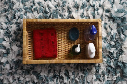 AKWAY Handmade Bamboo Storage Organizer Wicker Basket for Cloth, Toiletry, Cosmetic, Towels, Toys, Bathroom (18 x 11 x 5.5, Beige)