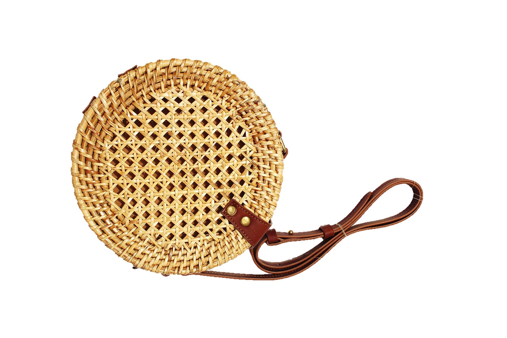 AKWAY Rattan Sling Bag | Rattan Cross body Bag with Shoulder Leather Strap for Women (Color: Natural)